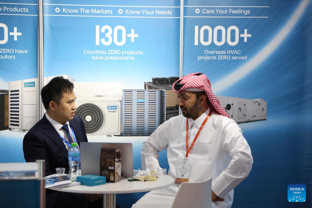 ABU DABI, 13 noviembre, 2024 (Xinhua) -- Imagen del 12 de noviembre de 2024 de personas visitando la primera Feria de Electrónica de Consumo de Medio Oriente, en Abu Dabi, Emiratos Arabes Unidos. La feria de electrónica de consumo, que presenta exclusivamente electrodomésticos y productos electrónicos fabricados en China, se inauguró el martes en el Centro Nacional de Exposiciones de Abu Dabi, en Emiratos Arabes Unidos. (Xinhua/Wen Xinnian)
