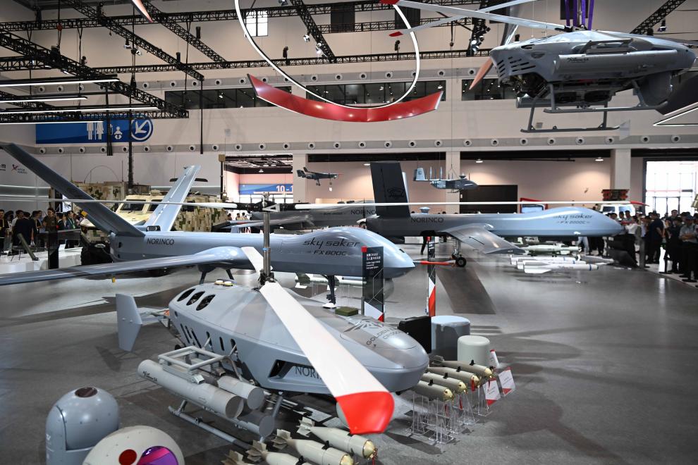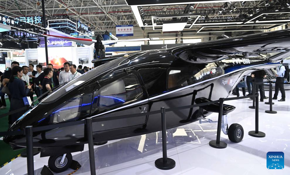 ZHUHAI, 14 noviembre, 2024 (Xinhua) -- Imagen del 13 de noviembre de 2024 de la aeronave AR-E300 de la Corporación de la Industria de la Aviación de China (AVIC, por sus siglas en inglés) en el Airshow China, en Zhuhai, en la provincia de Guangdong, en el sur de China. Un área de economía de baja altitud se instaló en la XV Exposición Internacional Aeronáutica y Aeroespacial de China, también conocida como Airshow China, mostrando productos y escenarios de aplicación relacionados. (Xinhua/Deng Hua)