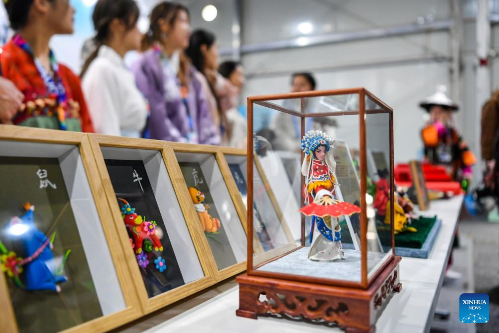 BAKU, 14 noviembre, 2024 (Xinhua) -- Imagen del 13 de noviembre de 2024 de productos exhibidos en el Pabellón de China durante la 29ª sesión de la Conferencia de las Partes de la Convención Marco de las Naciones Unidas sobre el Cambio Climático (COP29), en Bakú, Azerbaiyán. Diversos productos y servicios con elementos chinos han llamado la atención de los participantes en la COP29. (Xinhua/Cao Yang)