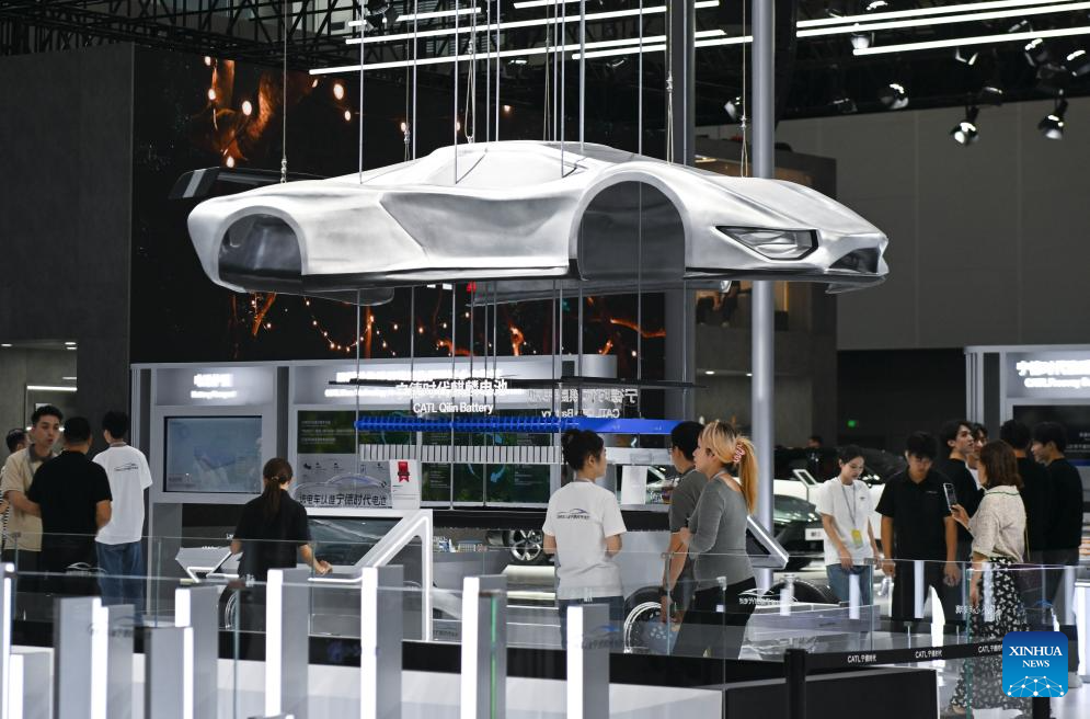 GUANGZHOU, 15 noviembre, 2024 (Xinhua) -- Imagen del 15 de noviembre de 2024 del estand de Contemporary Amperex Technology Co., Limited en la 22 Exposición Internacional del Automóvil de Guangzhou en el Complejo de la Feria de Importaciones y Exportaciones de China, en Guangzhou, en la provincia de Guangdong, en el sur de China. La exposición fue inaugurada aquí el viernes, en la que los vehículos de nuevas energías han llamado la atención ampliamente. (Xinhua/Deng Hua)