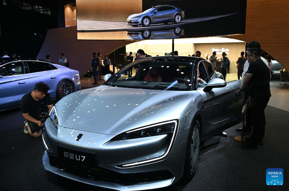 GUANGZHOU, 15 noviembre, 2024 (Xinhua) -- Imagen del 15 de noviembre de 2024 de un Yangwang U7 de BYD en la 22 Exposición Internacional del Automóvil de Guangzhou en el Complejo de la Feria de Importaciones y Exportaciones de China, en Guangzhou, en la provincia de Guangdong, en el sur de China. La exposición fue inaugurada aquí el viernes, en la que los vehículos de nuevas energías han llamado la atención ampliamente. (Xinhua/Deng Hua)