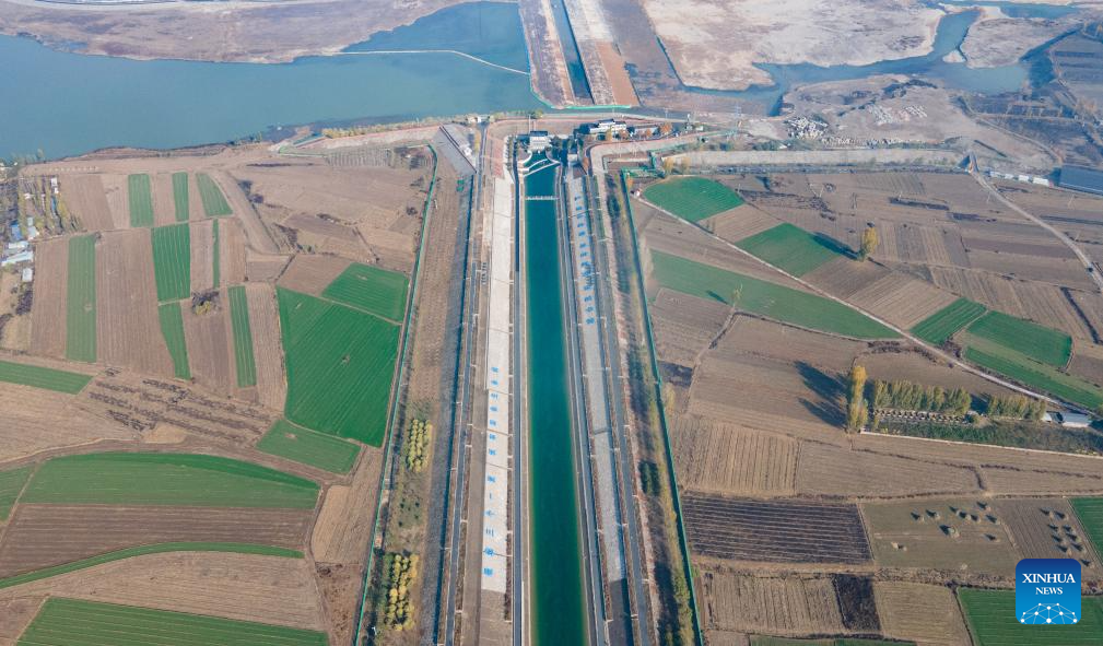 BEIJING, 15 noviembre, 2024 (Xinhua) -- Vista aérea tomada con un dron el 14 de noviembre de 2024 de un canal del proyecto de trasvase del agua del sur al norte de la ruta del medio, en la frontera entre Beijing y la provincia de Hebei, en el norte de China. El proyecto de trasvase del agua del sur al norte de China tiene tres rutas. La primera fase del proyecto de trasvase del agua del sur al norte de la ruta del medio de China comenzó a suministrar agua en diciembre de 2014. Con el objetivo de aumentar la seguridad del agua y mejorar la ecología y el medio ambiente del agua a lo largo de la ruta, el proyecto de la ruta intermedia ha estado transportando agua a través de canales y tuberías desde el embalse de Danjiangkou, en la provincia de Hubei, en el centro de China, hasta Henan, Hebei, Beijing y Tianjin. Desde su puesta en marcha, el proyecto ha transferido más de 10.600 millones de metros cúbicos de agua a la ciudad capital y ha beneficiado a más de 16 millones de personas. (Xinhua/Chen Zhonghao)