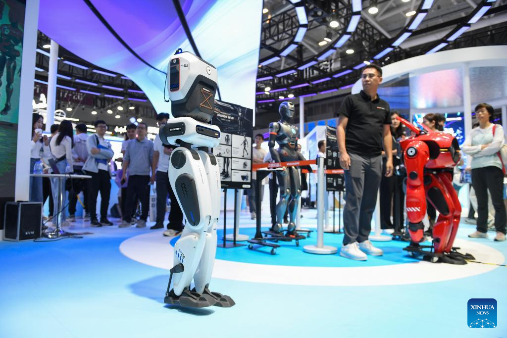 SHENZHEN, 15 noviembre, 2024 (Xinhua) -- Imagen del 14 de noviembre de 2024 de un robot demostrando su capacidad para caminar en la 26ª Feria de Alta Tecnología de China (CHTF, siglas en inglés), en Shenzhen, en la provincia de Guangdong, en el sur de China. Una variedad de robots y productos de industrias relacionadas se exhiben en la 26ª CHTF en curso, atrayendo mucha atención. (Xinhua/Mao Siqian)