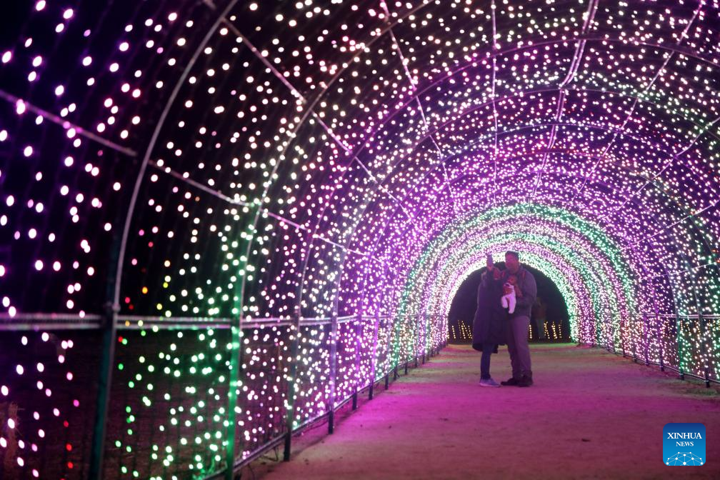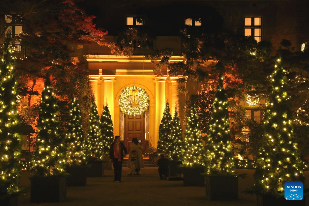 WOODSIDE, 20 noviembre, 2024 (Xinhua) -- Imagen del 19 de noviembre de 2024 de personas visitando las decoraciones luminosas en la Casa y Jardín Histórico Filoli, en Woodside, California, Estados Unidos. (Xinhua/Liu Yilin)
