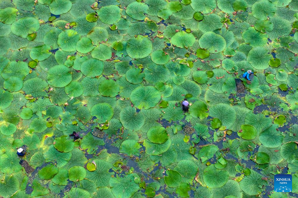 BEIJING, 21 noviembre, 2024 (Xinhua) -- Vista aérea del 26 de agosto de 2023 de agricultores cosechando fruta de gorgona, en la aldea de Shenyu de la ciudad de Taizhou, en la provincia de Jiangsu, en el este de China. El éxito de China en la lucha contra la pobreza ofrece experiencia al mundo. De acuerdo con el informe de la ONU sobre el Estado de la Seguridad Alimentaria y la Nutrición en el Mundo, 733 millones de personas enfrentaron hambre en 2023. China lanzó una monumental campaña antipobreza sin precedentes en el mundo. En 2021, China declaró una "victoria completa" en la erradicación de la pobreza absoluta. China ha sacado a 800 millones de personas de la pobreza absoluta y ha cumplido con anticipación el objetivo de reducción de la pobreza de la Agenda 2030 para el Desarrollo Sostenible de la ONU. La historia de China es una prueba de que los países en desarrollo pueden eliminar la pobreza cuando hay resistencia, perseverancia y espíritu de lucha. Si China puede lograrlo, otros países en desarrollo también pueden lograrlo. Esto es lo que la batalla de China contra la pobreza le dice al mundo. (Xinhua/Tang Dehong)