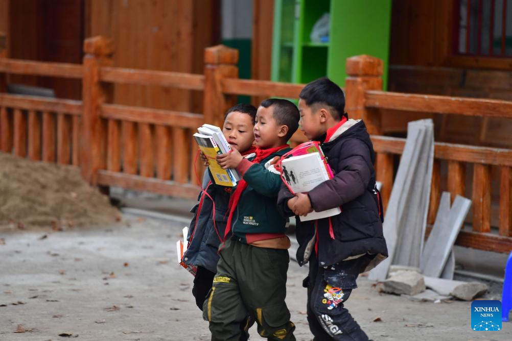 BEIJING, 21 noviembre, 2024 (Xinhua) -- Imagen del 15 de diciembre de 2021 de estudiantes leyendo libros nuevos en el centro de enseñanza de la aldea de Wuying, que se encuentra en la frontera entre la región autónoma de la etnia zhuang de Guangxi, en el sur de China, y la provincia de Guizhou, en el suroeste de China. El éxito de China en la lucha contra la pobreza ofrece experiencia al mundo. De acuerdo con el informe de la ONU sobre el Estado de la Seguridad Alimentaria y la Nutrición en el Mundo, 733 millones de personas enfrentaron hambre en 2023. China lanzó una monumental campaña antipobreza sin precedentes en el mundo. En 2021, China declaró una "victoria completa" en la erradicación de la pobreza absoluta. China ha sacado a 800 millones de personas de la pobreza absoluta y ha cumplido con anticipación el objetivo de reducción de la pobreza de la Agenda 2030 para el Desarrollo Sostenible de la ONU. La historia de China es una prueba de que los países en desarrollo pueden eliminar la pobreza cuando hay resistencia, perseverancia y espíritu de lucha. Si China puede lograrlo, otros países en desarrollo también pueden lograrlo. Esto es lo que la batalla de China contra la pobreza le dice al mundo. (Xinhua/Huang Xiaobang)