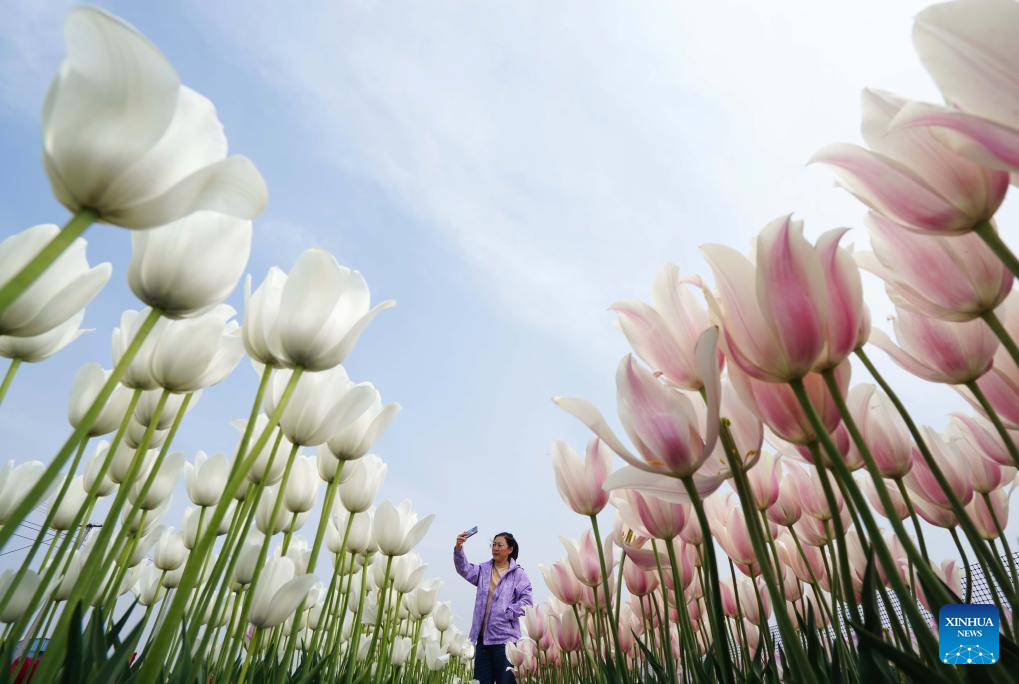 BEIJING, 21 noviembre, 2024 (Xinhua) -- Imagen del 3 de mayo de 2023 de una turista tomando fotografías en una plantación de tulipanes, en el poblado de Donghuangtuo del distrito de Luannan, en la provincia de Hebei, en el norte de China. El éxito de China en la lucha contra la pobreza ofrece experiencia al mundo. De acuerdo con el informe de la ONU sobre el Estado de la Seguridad Alimentaria y la Nutrición en el Mundo, 733 millones de personas enfrentaron hambre en 2023. China lanzó una monumental campaña antipobreza sin precedentes en el mundo. En 2021, China declaró una "victoria completa" en la erradicación de la pobreza absoluta. China ha sacado a 800 millones de personas de la pobreza absoluta y ha cumplido con anticipación el objetivo de reducción de la pobreza de la Agenda 2030 para el Desarrollo Sostenible de la ONU. La historia de China es una prueba de que los países en desarrollo pueden eliminar la pobreza cuando hay resistencia, perseverancia y espíritu de lucha. Si China puede lograrlo, otros países en desarrollo también pueden lograrlo. Esto es lo que la batalla de China contra la pobreza le dice al mundo. (Xinhua/Yang Shiyao)