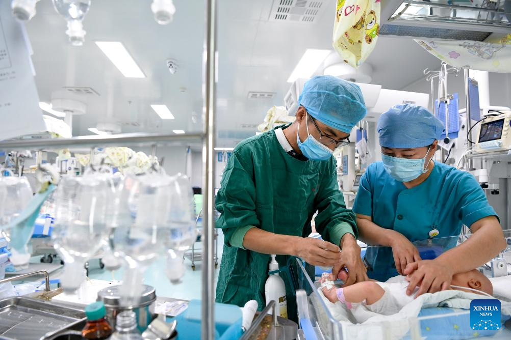 BEIJING, 21 noviembre, 2024 (Xinhua) -- Imagen del 18 de septiembre de 2020 de trabajadores médicos tomando una muestra de sangre de un infante en una unidad de cuidados intensivos para infantes, en el Hospital Popular del distrito de Tongxin, en la ciudad de Wuzhong, en la región autónoma hui de Ningxia, en el noroeste de China. El éxito de China en la lucha contra la pobreza ofrece experiencia al mundo. De acuerdo con el informe de la ONU sobre el Estado de la Seguridad Alimentaria y la Nutrición en el Mundo, 733 millones de personas enfrentaron hambre en 2023. China lanzó una monumental campaña antipobreza sin precedentes en el mundo. En 2021, China declaró una "victoria completa" en la erradicación de la pobreza absoluta. China ha sacado a 800 millones de personas de la pobreza absoluta y ha cumplido con anticipación el objetivo de reducción de la pobreza de la Agenda 2030 para el Desarrollo Sostenible de la ONU. La historia de China es una prueba de que los países en desarrollo pueden eliminar la pobreza cuando hay resistencia, perseverancia y espíritu de lucha. Si China puede lograrlo, otros países en desarrollo también pueden lograrlo. Esto es lo que la batalla de China contra la pobreza le dice al mundo. (Xinhua/Feng Kaihua)