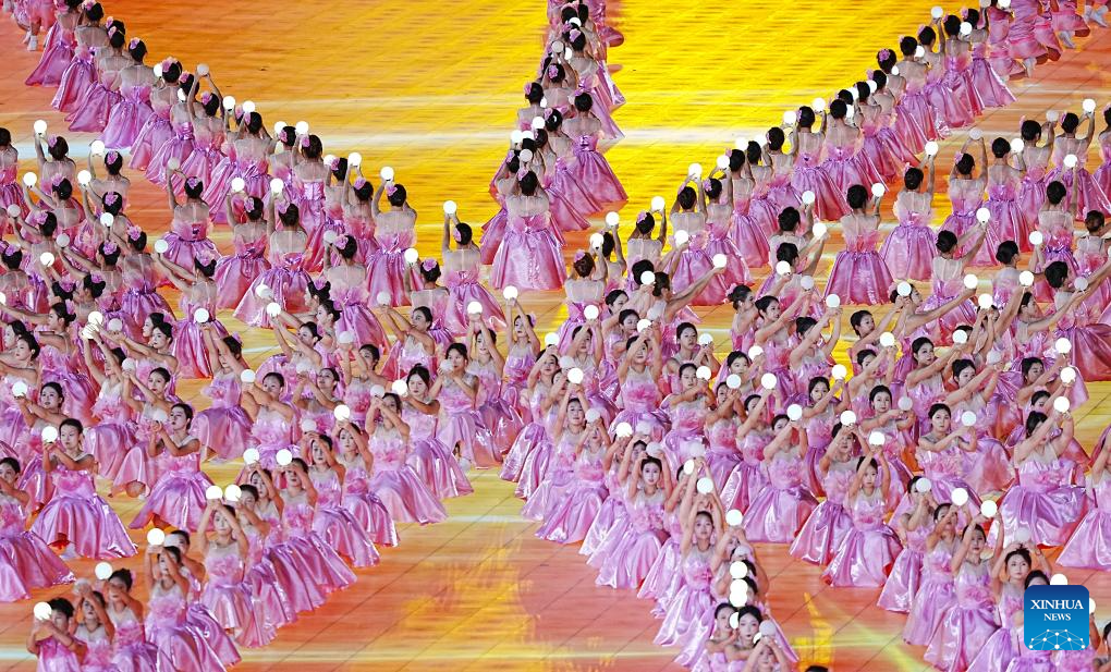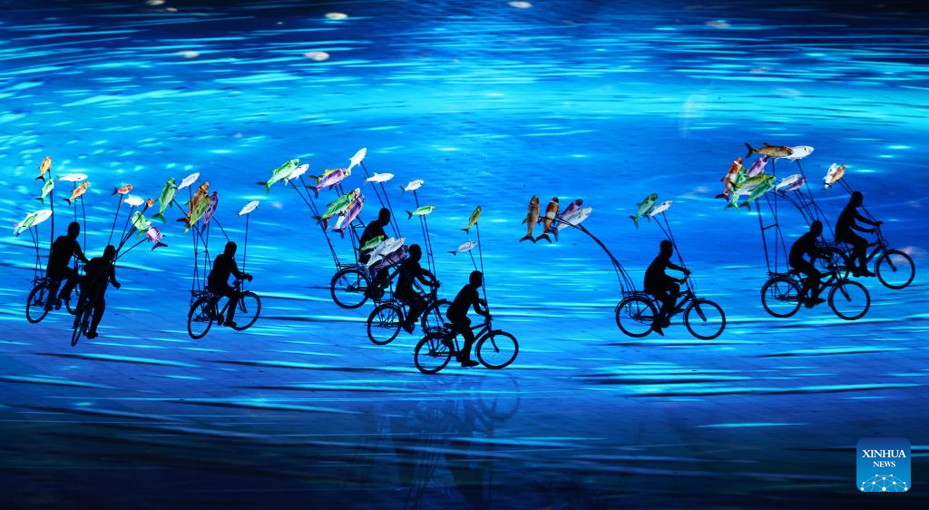 SANYA, 22 noviembre, 2024 (Xinhua) -- Artistas realizan una presentación durante la ceremonia de inauguración de los XII Juegos Tradicionales Nacionales de Minorías Etnicas de la República Popular China, en Sanya, en la provincia de Hainan, en el sur de China, el 22 de noviembre de 2024. (Xinhua/Yang Wenbin)