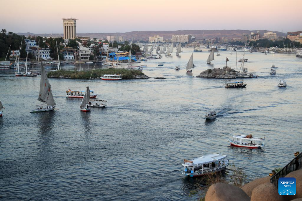ASUÁN, 25 noviembre, 2024 (Xinhua) -- Imagen del 22 de noviembre de 2024 de turistas paseando en barcos turísticos en el río Nilo, en Asuán, Egipto. Asuán, una ciudad del sur de Egipto situada en el curso superior del río Nilo, es uno de los destinos turísticos más famosos del país. Cuenta con ricos recursos turísticos culturales y naturales, atrayendo visitantes de todo el mundo cada año. (Xinhua/Sui Xiankai)