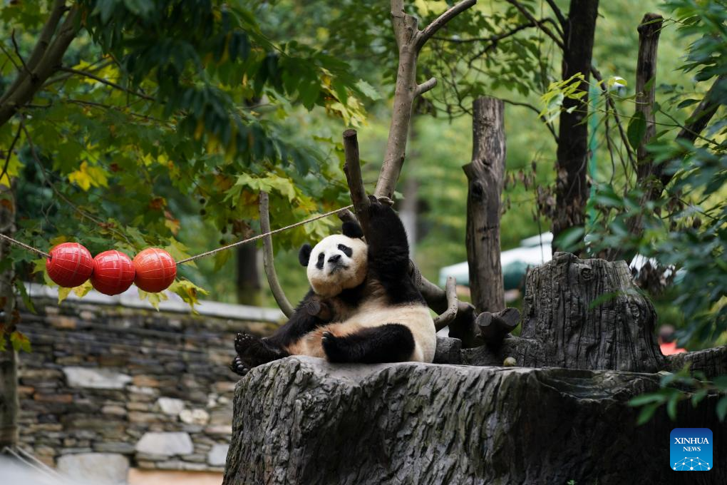 CHENGDU, 25 noviembre, 2024 (Xinhua) -- Imagen del 16 de abril de 2024 del panda gigante Xiao Qiji visto en la base de panda gigante de Shenshuping de la Reserva Natural Nacional de Wolong, en la provincia de Sichuan, en el suroeste de China. El macho Xiao Qiji, nació en el Zoológico Nacional Smithsonian en Washington D.C., Estados Unidos, el 21 de agosto de 2020. Unicos en China y adorados en todo el mundo, los pandas gigantes han servido como embajadores de la amistad que llevan la buena voluntad del pueblo chino más allá de las fronteras. Desde la década de 1990, China ha llevado a cabo iniciativas de investigación conjunta sobre protección con 26 instituciones de 20 países. Por lo general, los cachorros de panda gigante nacidos en el extranjero son devueltos a China cuando alcanzan cierta edad. Al regresar del extranjero, la mayoría de ellos vivirán en el Centro de Conservación e Investigación de Pandas Gigantes de China o en la Base de Investigación de Cría de Pandas Gigantes de Chengdu. (Xinhua/Xu Bingjie)