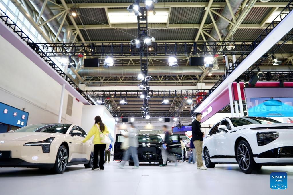 BEIJING, 28 noviembre, 2024 (Xinhua) -- Visitantes visitan el estand de XPENG en la segunda Exposición Internacional de Cadenas de Suministro de China (CISCE, por sus siglas en inglés), en Beijing, capital de China, el 28 de noviembre de 2024. El área de exhibición de vehículos inteligentes de la exposición muestra tecnologías y productos clave involucrados en toda la cadena industrial de vehículos inteligentes, que abarcan desde materias primas básicas y componentes clave hasta servicios relevantes. Rio Tinto, Bosch, Baowu Steel y XPENG albergan un estand conjunto en el área de exhibición de vehículos inteligentes este año, lo que demuestra la profunda integración y cooperación de los actores relacionados a lo largo de la cadena de suministro de la cadena industrial global. (Xinhua/Na Yuqi)