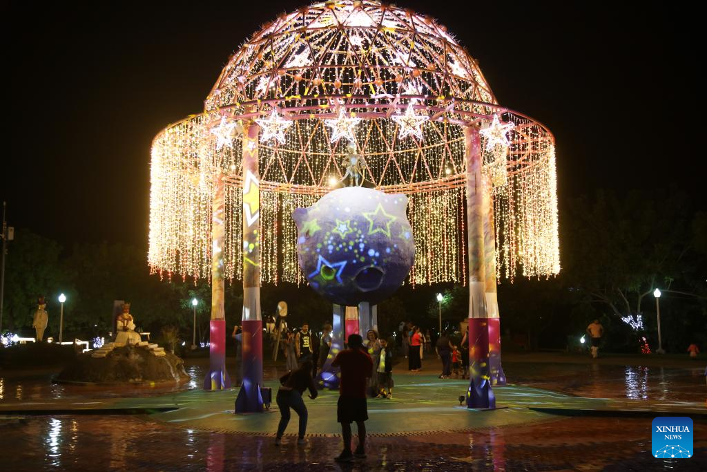 LA LIBERTAD, 29 noviembre, 2024 (Xinhua) -- Imagen del 28 de noviembre de 2024 de personas disfrutando de las luces navideñas en el parque El Principito, en el departamento de La Libertad, El Salvador. (Xinhua/Alexander Peña)