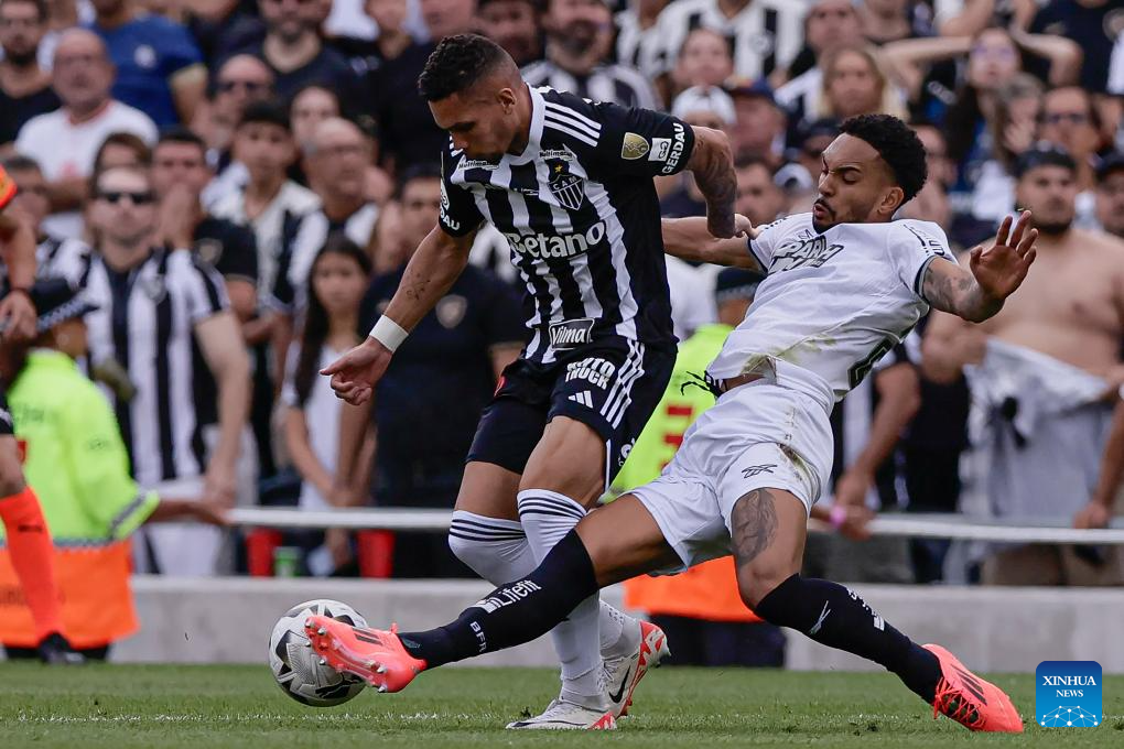 BUENOS AIRES, 30 noviembre, 2024 (Xinhua) -- El jugador Fausto Vera (d), Atlético Mineiro de Brasil, disputa el balón con Thiago Almada (i), de Botafogo de Brasil, durante el partido correspondiente a la final de la Copa Conmebol Libertadores, celebrado en el estadio Mas Monumental, en la ciudad de Buenos Aires, capital de Argentina, el 30 de noviembre de 2024. (Xinhua/Luciano González)
