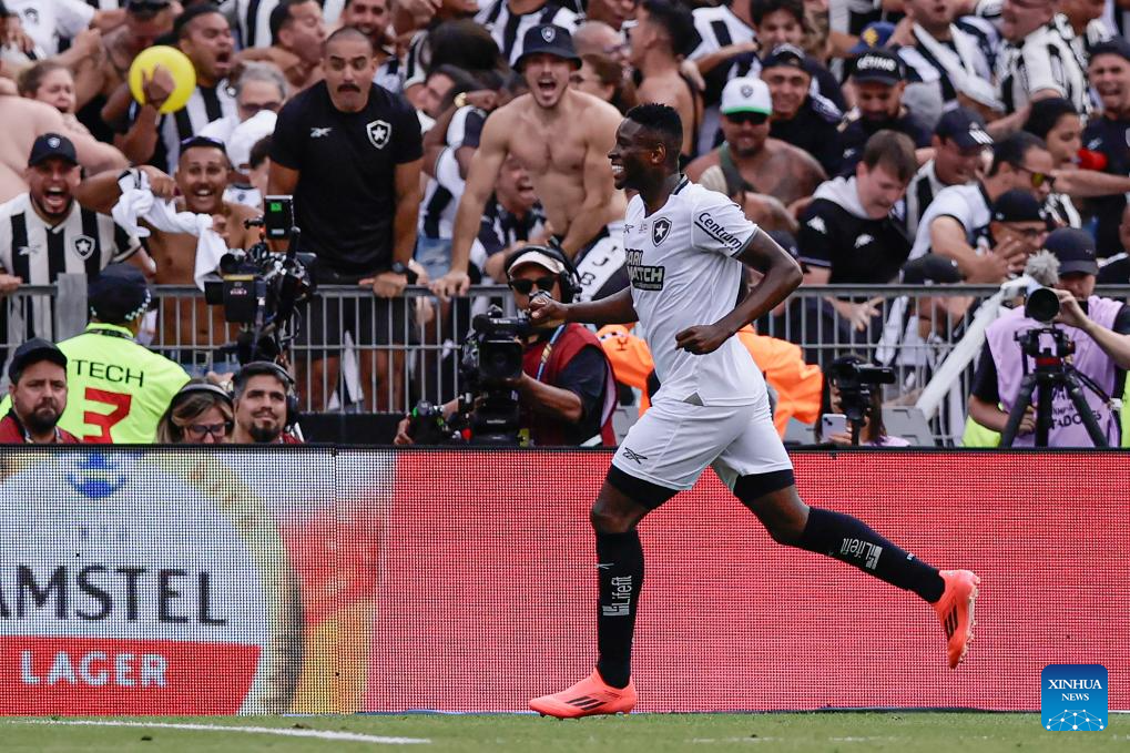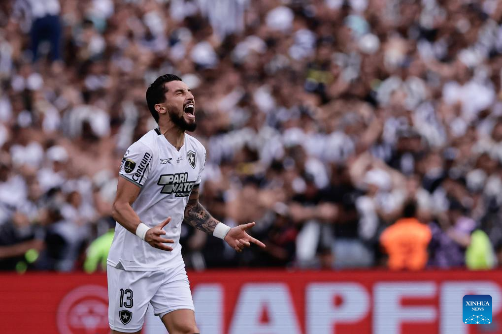 BUENOS AIRES, 30 noviembre, 2024 (Xinhua) -- El jugador Luiz Henrique, de Botafogo de Brasil, festeja su anotación durante el partido correspondiente a la final de la Copa Conmebol Libertadores, ante Atlético Mineiro de Brasil, celebrado en el estadio Mas Monumental, en la ciudad de Buenos Aires, capital de Argentina, el 30 de noviembre de 2024. (Xinhua/Luciano González)
