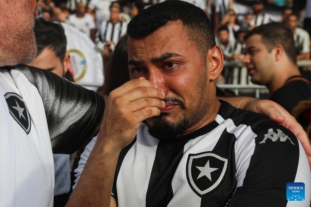 RIO DE JANEIRO, 1 diciembre, 2024 (Xinhua) -- Imagen del 30 de noviembre de 2024 de un aficionado de Botafogo de Brasil reaccionando previo a la transmisión de la final de la Copa Conmebol Libertadores en el Estadio Nilton Santos, en Río de Janeiro, Brasil. Botafogo derrotó el sábado 3-1 a su club compatriota Atlético Mineiro y se consagró por primera vez en su historia como campeón de la Copa Libertadores de América. (Xinhua/Claudia Martini)