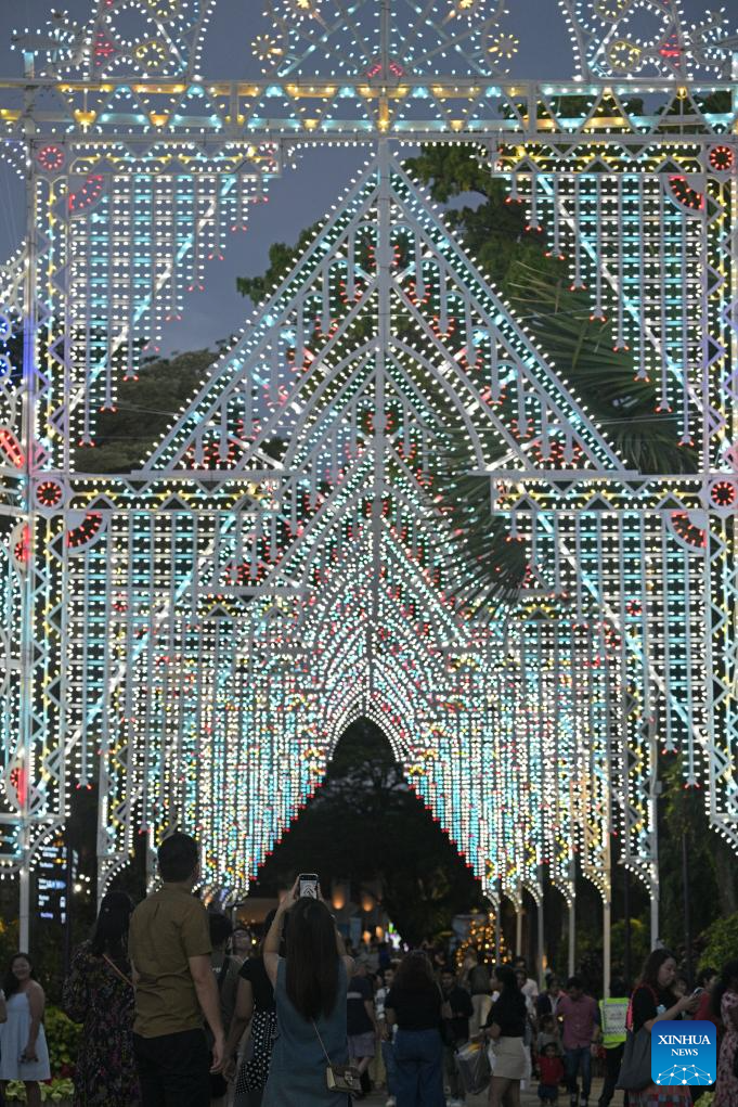 SINGAPUR, 2 diciembre, 2024 (Xinhua) -- Imagen del 1 de diciembre de 2024 de personas disfrutando de las decoraciones luminosas del País de las Maravillas de Navidad, en los Jardines de la Bahía de Singapur. El evento navideño se celebra aquí del 29 de noviembre de 2024 al 1 de enero de 2025. (Xinhua/Then Chih Wey)