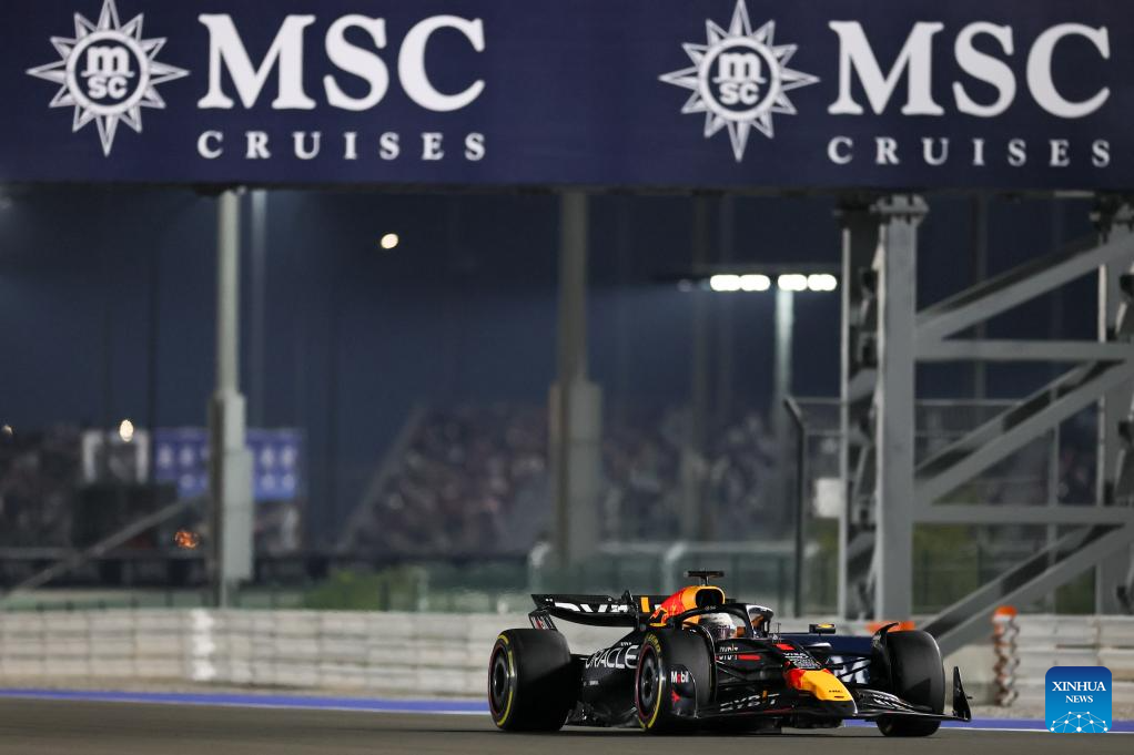 LUSAIL, 2 diciembre, 2024 (Xinhua) -- Imagen del 1 de diciembre de 2024 del piloto neerlandés de la escudería Red Bull, Max Verstappen, compitiendo durante la carrera del Gran Premio de Qatar de F1, en el Circuito Internacional de Lusail, en Lusail, Qatar. (Xinhua/Song Haiyuan)