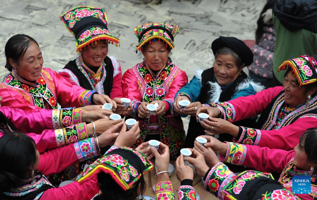 BEIJING, 5 diciembre, 2024 (Xinhua) -- Imagen del 2 de noviembre de 2013 de personas levantado sus copas para celebrar el próximo año nuevo del grupo étnico Qiang, en el municipio de Longxi del distrito de Wenchuan, en la prefectura autónoma de las etnias tibetana y qiang de Aba, en la provincia de Sichuan, en el suroeste de China. La fiesta de Año Nuevo de los qiang, grupo étnico de la provincia china de Sichuan, fue reconocida el jueves como parte de la Lista Representativa del Patrimonio Cultural Inmaterial de la Humanidad de la Organización de las Naciones Unidas para la Educación, la Ciencia y la Cultura (UNESCO), luego de haber estado desde 2009 en la Lista del Patrimonio Cultural Inmaterial que requiere medidas urgentes de salvaguardia. (Xinhua/He Haiyang)