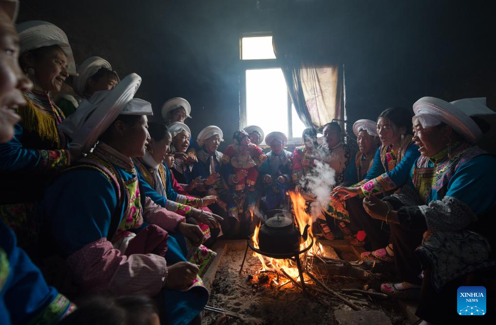 BEIJING, 5 diciembre, 2024 (Xinhua) -- Imagen del 31 de octubre de 2016 de personas del grupo étnico Qiang reuniéndose para entonar canciones folclóricas durante la celebración de su año nuevo, en la aldea de Seba del distrito de Maoxian, en la provincia de Sichuan, en el suroeste de China. La fiesta de Año Nuevo de los qiang, grupo étnico de la provincia china de Sichuan, fue reconocida el jueves como parte de la Lista Representativa del Patrimonio Cultural Inmaterial de la Humanidad de la Organización de las Naciones Unidas para la Educación, la Ciencia y la Cultura (UNESCO), luego de haber estado desde 2009 en la Lista del Patrimonio Cultural Inmaterial que requiere medidas urgentes de salvaguardia. (Xinhua/Jiang Hongjing)