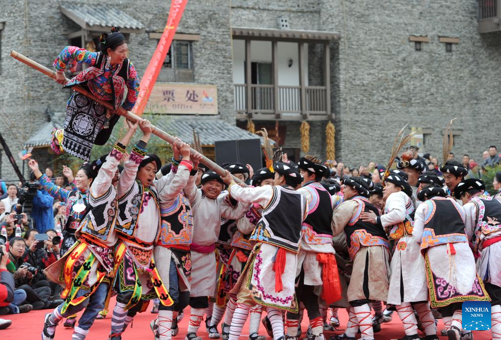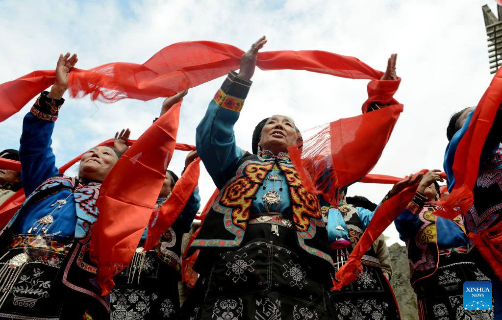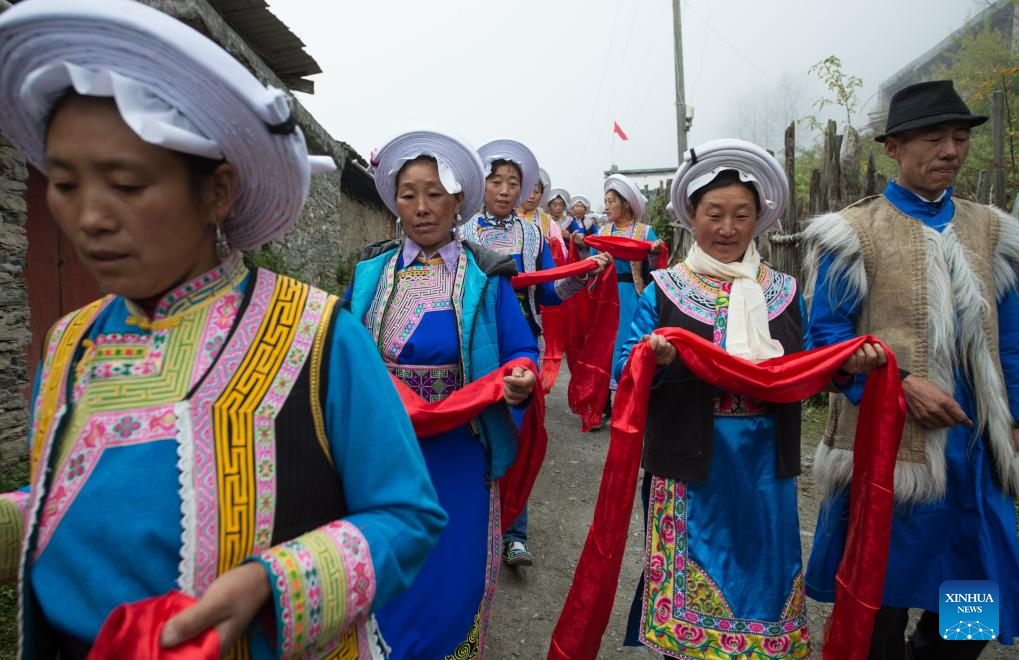 BEIJING, 5 diciembre, 2024 (Xinhua) -- Imagen del 31 de octubre de 2016 de personas del grupo étnico Qiang asistiendo a una actividad folclórica durante la celebración de su año nuevo, en la aldea de Seba del distrito de Maoxian, en la provincia de Sichuan, en el suroeste de China. La fiesta de Año Nuevo de los qiang, grupo étnico de la provincia china de Sichuan, fue reconocida el jueves como parte de la Lista Representativa del Patrimonio Cultural Inmaterial de la Humanidad de la Organización de las Naciones Unidas para la Educación, la Ciencia y la Cultura (UNESCO), luego de haber estado desde 2009 en la Lista del Patrimonio Cultural Inmaterial que requiere medidas urgentes de salvaguardia. (Xinhua/Jiang Hongjing)
