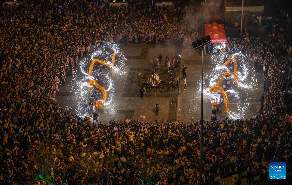 BEIJING, 5 diciembre, 2024 (Xinhua) -- Imagen del 14 de noviembre de 2020 de residentes realizando la danza del dragón en una plaza, en el distrito autónomo de la etnia qiang de Beichuan, en la provincia de Sichuan, en el suroeste de China. La fiesta de Año Nuevo de los qiang, grupo étnico de la provincia china de Sichuan, fue reconocida el jueves como parte de la Lista Representativa del Patrimonio Cultural Inmaterial de la Humanidad de la Organización de las Naciones Unidas para la Educación, la Ciencia y la Cultura (UNESCO), luego de haber estado desde 2009 en la Lista del Patrimonio Cultural Inmaterial que requiere medidas urgentes de salvaguardia. (Xinhua/Jiang Hongjing)