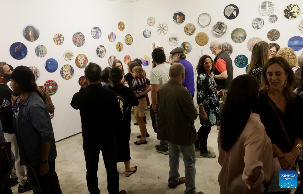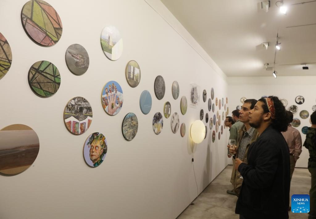 LIMA, 5 diciembre, 2024 (Xinhua) -- Imagen del 4 de diciembre de 2024 de personas asistiendo a la inauguración de la exposición colectiva "Sin Cuenta" con motivo de la celebración del 50 aniversario de la Galería Fórum, en Lima, Perú. (Xinhua/Mariana Bazo)