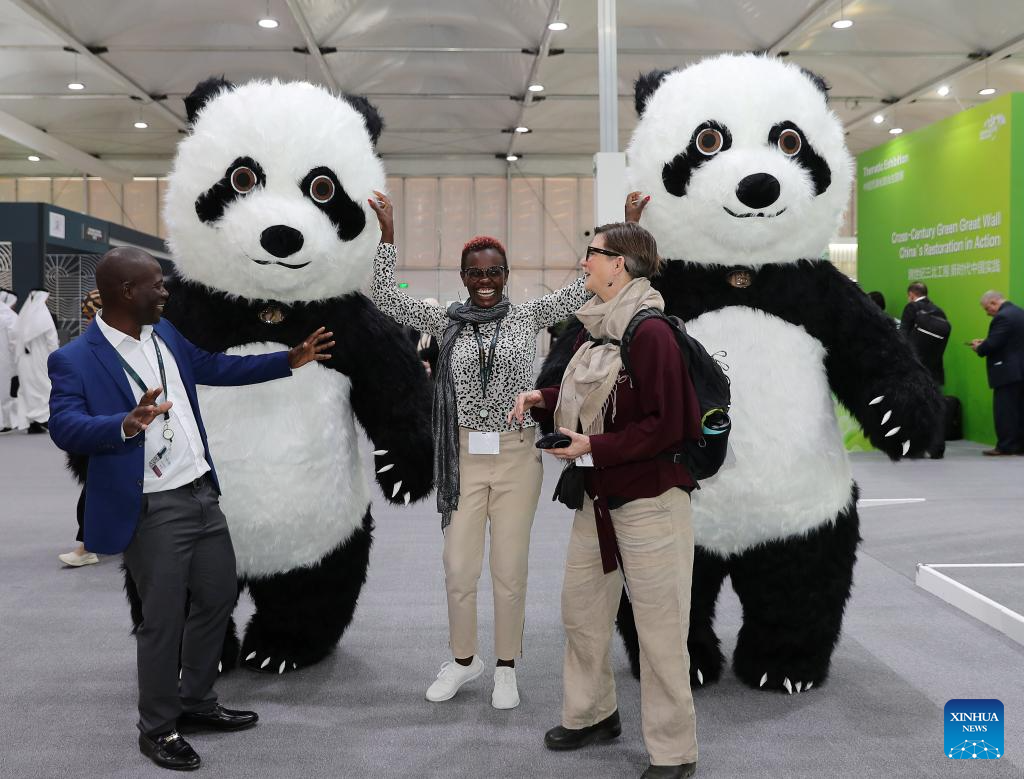 RIAD, 5 diciembre, 2024 (Xinhua) -- Imagen del 2 de diciembre de 2024 de personas visitando el Pabellón de China durante la 16ª Conferencia de las Partes (COP16) de la Convención de las Naciones Unidas de Lucha contra la Desertificación (UNCCD, por sus siglas en inglés), en Riad, Arabia Saudita. Con una superficie de más de 600 metros cuadrados, el Pabellón de China es el segundo pabellón nacional más grande del evento. Su exposición, con el tema "La Gran Muralla Verde de los Siglos, la Restauración de China en Acción", muestra la batalla de la nación contra la desertificación, en particular a través del Programa de la Franja Forestal Protectora de los Tres Nortes, una importante iniciativa nacional destinada a revertir la desertificación de la tierra. (Xinhua/Wang Dongzhen)