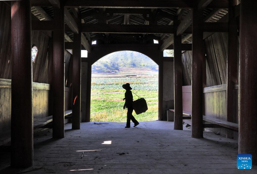 BEIJING, 5 diciembre, 2024 (Xinhua) -- Imagen del 17 de octubre de 2009 de un residente caminando en el puente Guangli, un puente techado con arcadas de madera, en el distrito de Pingnan, en la provincia de Fujian, en el sureste de China. La Organización de las Naciones Unidas para la Educación, la Ciencia y la Cultura (UNESCO) reconoció el jueves al diseño y las técnicas tradicionales chinas de construcción de puentes con arcadas de madera en su Lista Representativa del Patrimonio Cultural Inmaterial de la Humanidad, los cuales están desde 2009 en la lista del Patrimonio Cultural Inmaterial que requiere medidas urgentes de salvaguardia. (Xinhua/Jiang Kehong)