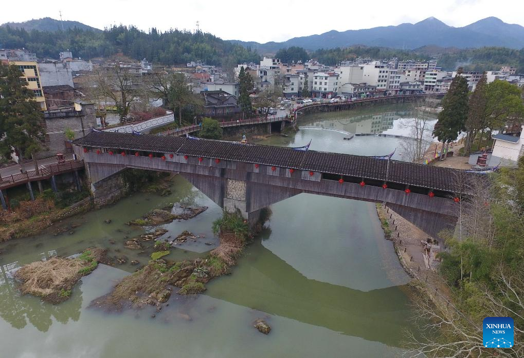 BEIJING, 5 diciembre, 2024 (Xinhua) -- Imagen aérea del 19 de febrero de 2019 del puente Qiancheng, un puente techado con arcadas de madera, en el municipio de Tangkou del distrito de Pingnan, en la provincia de Fujian, en el sureste de China. La Organización de las Naciones Unidas para la Educación, la Ciencia y la Cultura (UNESCO) reconoció el jueves al diseño y las técnicas tradicionales chinas de construcción de puentes con arcadas de madera en su Lista Representativa del Patrimonio Cultural Inmaterial de la Humanidad, los cuales están desde 2009 en la lista del Patrimonio Cultural Inmaterial que requiere medidas urgentes de salvaguardia. (Xinhua/Lin Shanchuan)