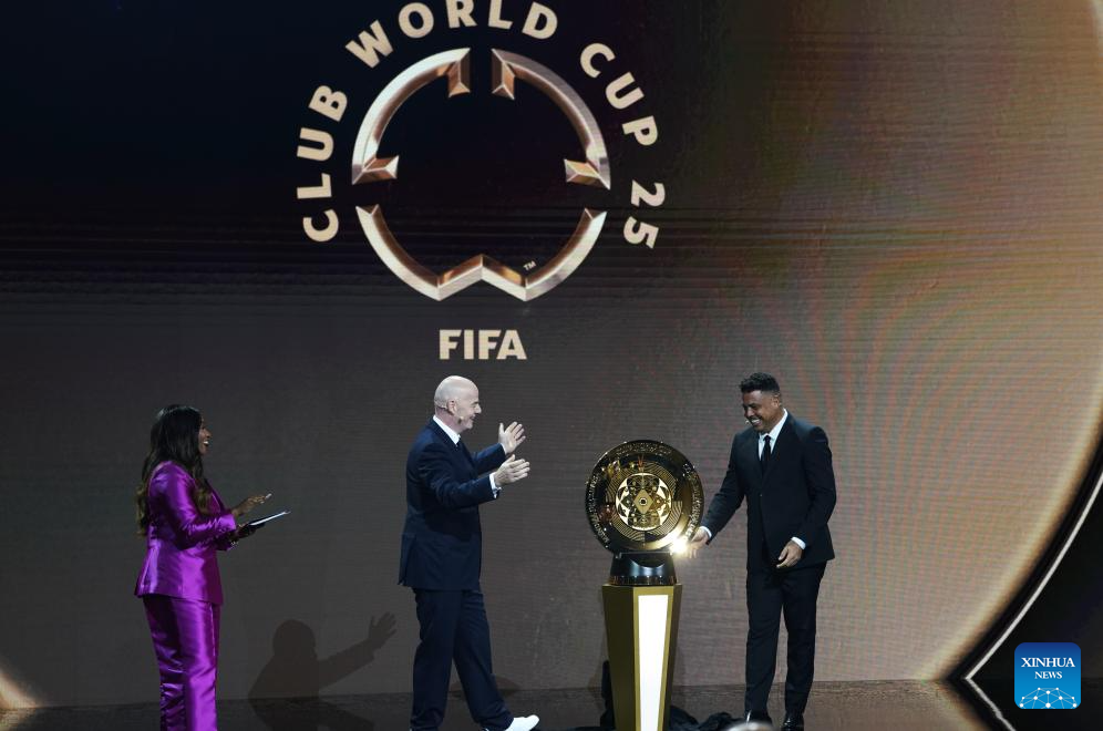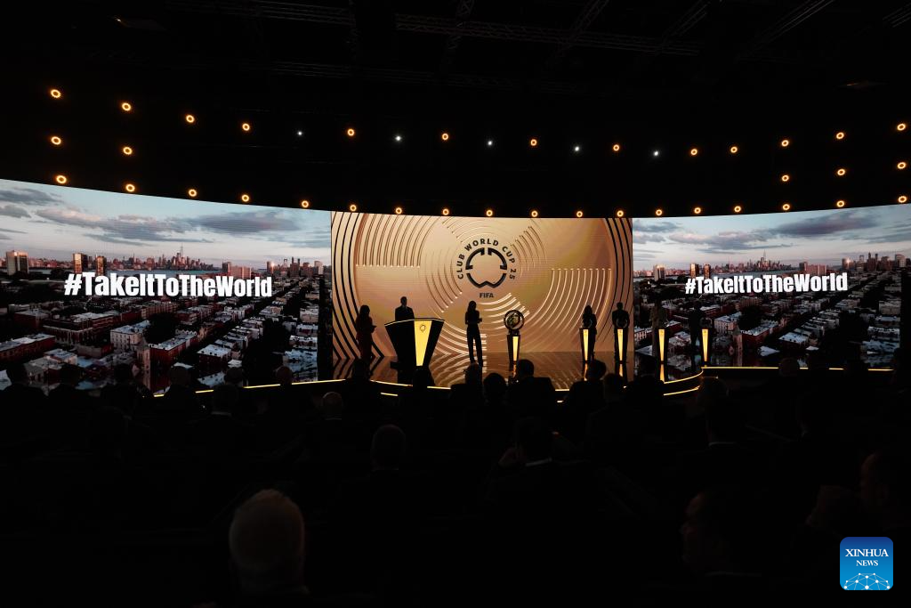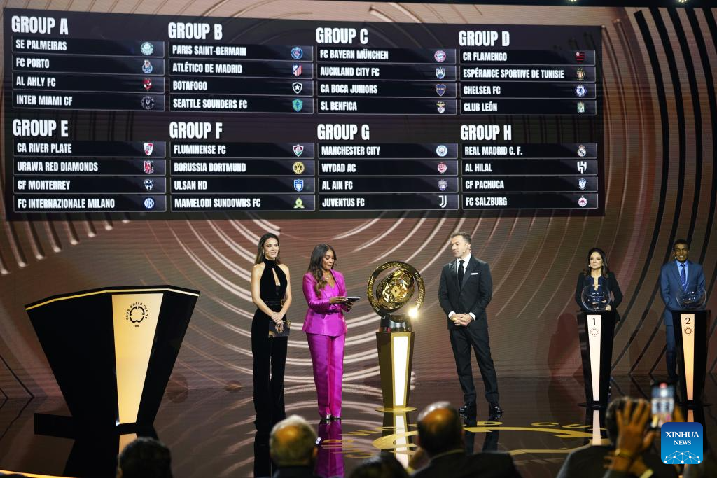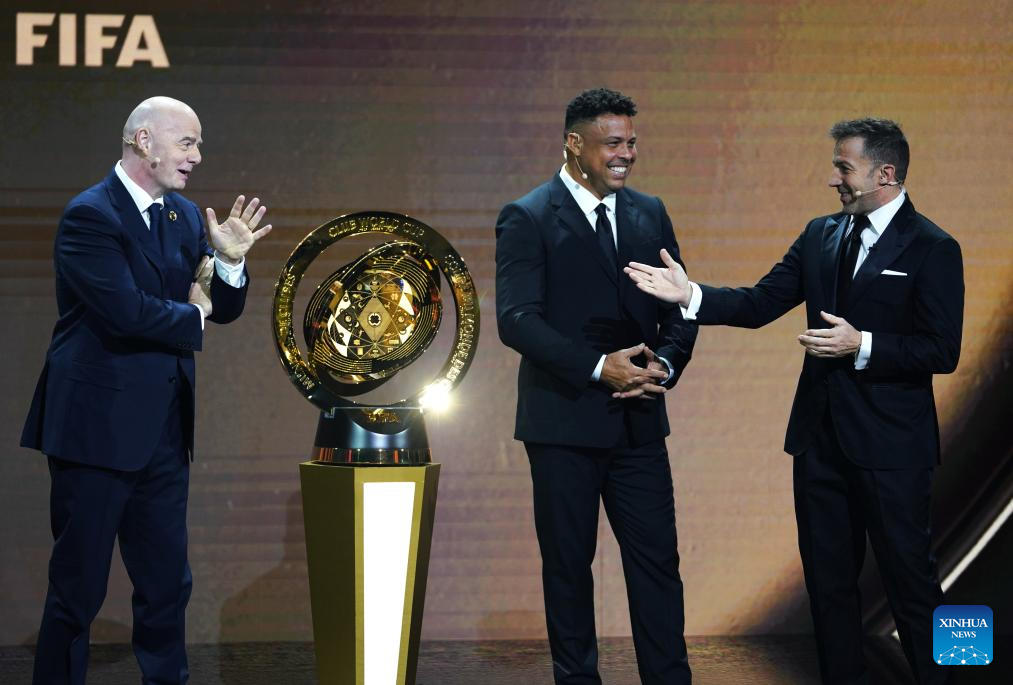 MIAMI, 6 diciembre, 2024 (Xinhua) -- Imagen del 5 de diciembre de 2024 de la ceremonia del sorteo del Mundial de Clubes de la FIFA 2025, en Miami, Estados Unidos. (Xinhua/Wu Xiaoling)