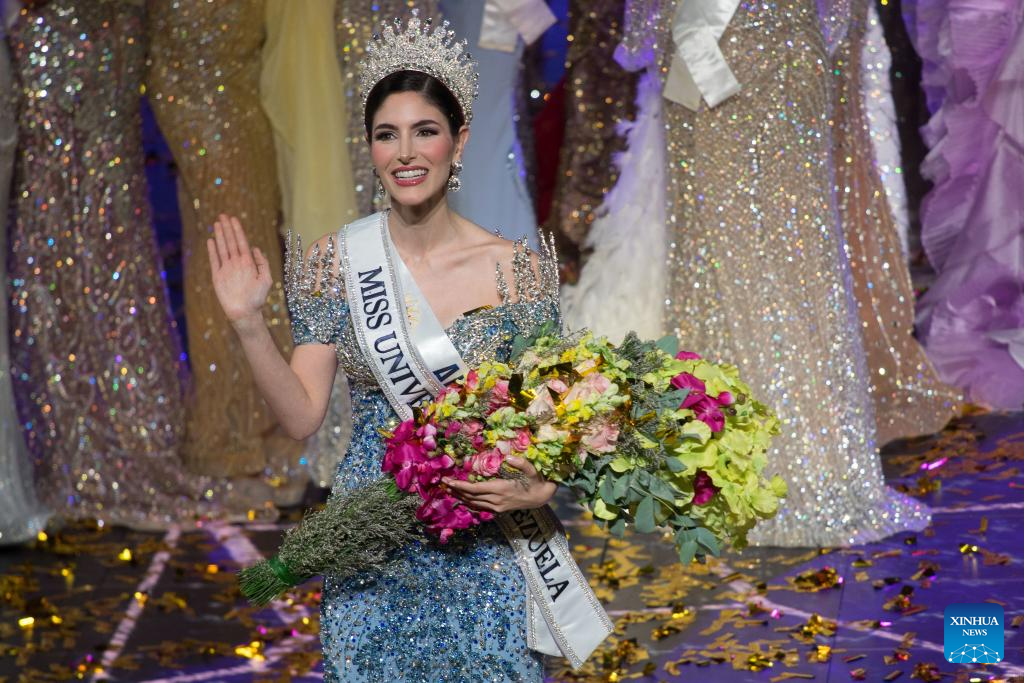 CARACAS, 6 diciembre, 2024 (Xinhua) -- Imagen del 5 de diciembre de 2024 de Stephany Abasali, del estado Anzoátegui, reaccionado luego de ser coronada en la 72 edición del concurso Miss Venezuela 2024, en Caracas, Venezuela. (Xinhua/Str)