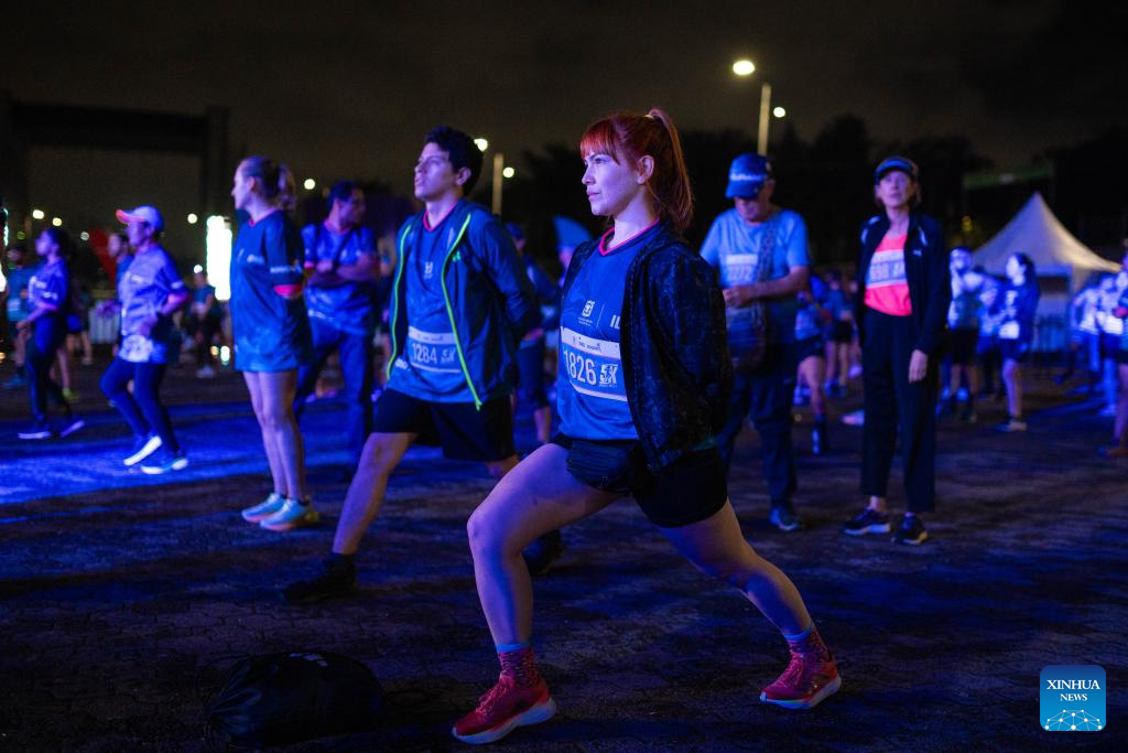 BOGOTA, 7 diciembre, 2024 (Xinhua) -- Imagen del 6 de diciembre de 2024 de personas preparándose previo a participar en la carrera recreativa "Bogotá Brilla 5K" en el Parque Metropolitano Simón Bolívar, en Bogotá, Colombia. (Xinhua/Andrés Moreno)