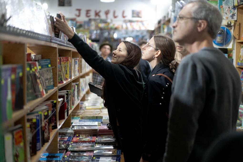 BUENOS AIRES, 8 diciembre, 2024 (Xinhua) -- Imagen del 7 de diciembre de 2024 de mujeres observando libros durante una nueva edición de la "Noche de las Librerías", en la ciudad de Buenos Aires, capital de Argentina. La ciudad de Buenos Aires celebró la cultura desde la puesta del sol el sábado hasta la madrugada del domingo, en el marco de una nueva edición de la "Noche de las Librerías", una actividad con epicentro en espacios de literatura ubicados en la emblemática avenida Corrientes de la capital argentina, los que permanecieron abiertos para deleite de los amantes de la lectura y los libros. (Xinhua/Martín Zabala)