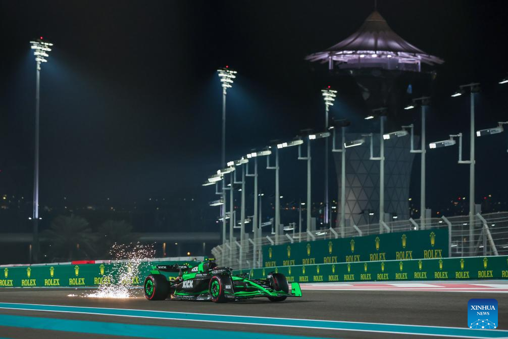 ABU DABI, 8 diciembre, 2024 (Xinhua) -- Imagen del 7 de diciembre de 2024 del piloto chino de la escudería Kick Sauber, Zhou Guanyu, compitiendo durante la sesión de clasificación del Gran Premio de Abu Dabi de Fórmula 1 en el Circuito de Yas Marina, en Abu Dabi, Emiratos Arabes Unidos. (Xinhua/Qian Jun)