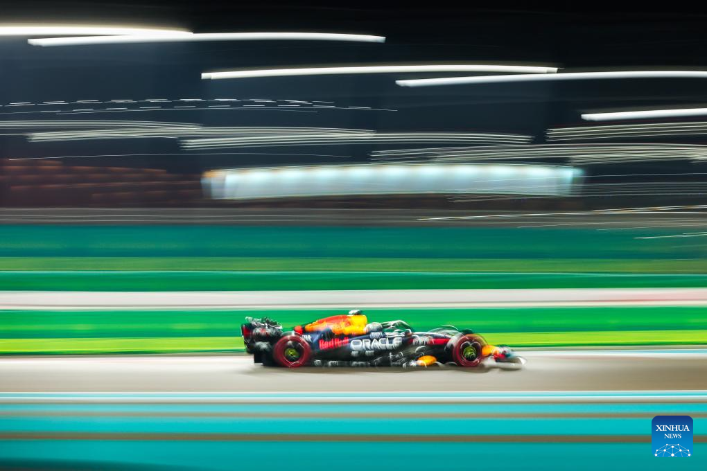ABU DABI, 8 diciembre, 2024 (Xinhua) -- Imagen del 7 de diciembre de 2024 del piloto neerlandés de la escudería Red Bull, Max Verstappen, compitiendo durante la sesión de clasificación del Gran Premio de Abu Dabi de Fórmula 1 en el Circuito de Yas Marina, en Abu Dabi, Emiratos Arabes Unidos. (Xinhua/Qian Jun)
