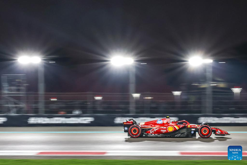 ABU DABI, 8 diciembre, 2024 (Xinhua) -- Imagen del 7 de diciembre de 2024 del piloto español de la escudería Ferrari, Carlos Sainz, compitiendo durante la sesión de clasificación del Gran Premio de Abu Dabi de Fórmula 1 en el Circuito de Yas Marina, en Abu Dabi, Emiratos Arabes Unidos. (Xinhua/Qian Jun)
