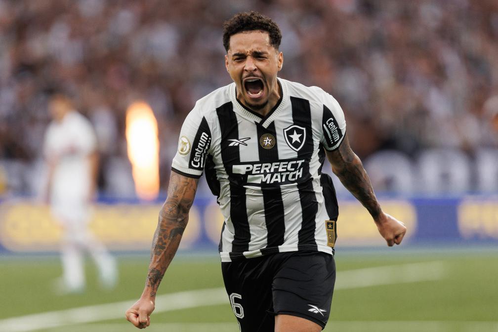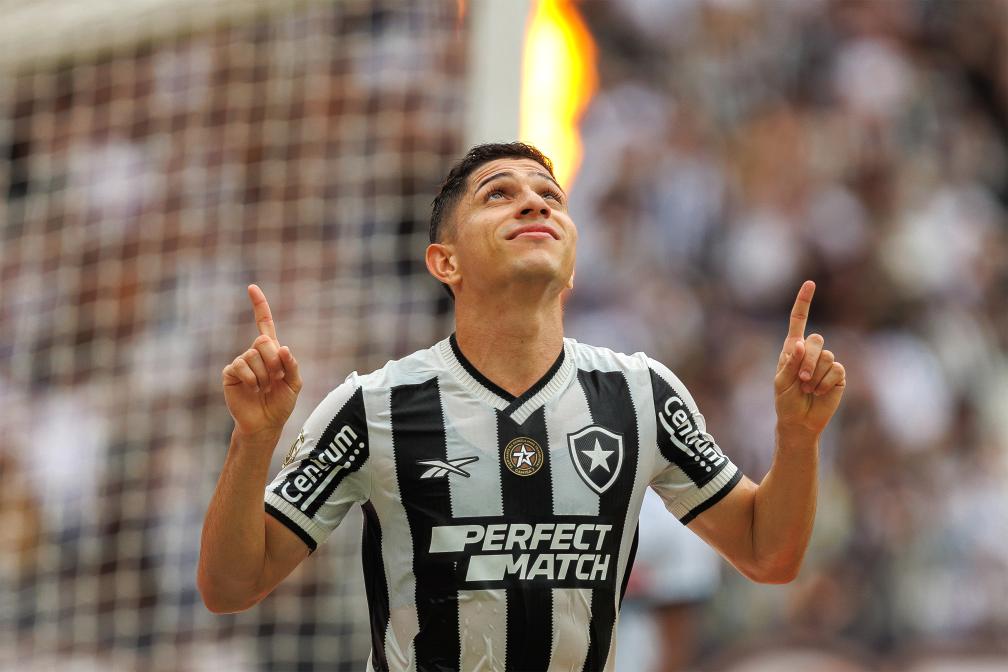 RIO DE JANEIRO, 9 diciembre, 2024 (Xinhua) -- Imagen del 8 de diciembre de 2024 del jugador Jefferson Savarino, de Botafogo, festejando su anotación durante el partido correspondiente a la jornada 38 del Campeonato Brasileño Serie A, ante Sao Paulo, celebrado en el Estadio Nilton Santos, en Río de Janeiro, Brasil. El Campeonato Brasileño de 2024, uno de los más emocionantes de la historia del torneo de fútbol brasileño, concluyó el domingo con el Botafogo proclamándose campeón tras un ayuno de 29 años, al ganar por 2-1 al Sao Paulo en la última jornada, ocho días después de conquistar su primera Copa Libertadores de América, al vencer el duelo brasileño ante el Atlético Mineiro en la final jugada en Argentina. (Xinhua/Claudia Martini)