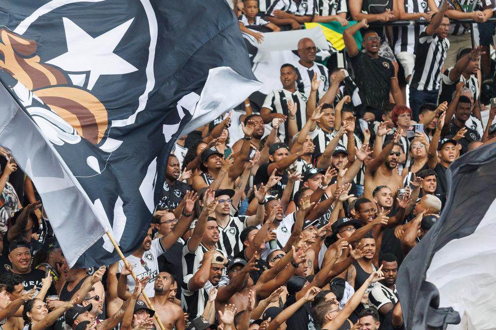 RIO DE JANEIRO, 9 diciembre, 2024 (Xinhua) -- Imagen del 8 de diciembre de 2024 de aficionados de Botafogo festejando una anotación durante el partido correspondiente a la jornada 38 del Campeonato Brasileño Serie A, ante Sao Paulo, celebrado en el Estadio Nilton Santos, en Río de Janeiro, Brasil. El Campeonato Brasileño de 2024, uno de los más emocionantes de la historia del torneo de fútbol brasileño, concluyó el domingo con el Botafogo proclamándose campeón tras un ayuno de 29 años, al ganar por 2-1 al Sao Paulo en la última jornada, ocho días después de conquistar su primera Copa Libertadores de América, al vencer el duelo brasileño ante el Atlético Mineiro en la final jugada en Argentina. (Xinhua/Claudia Martini)
