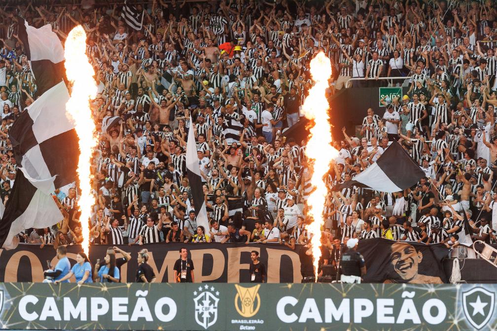 RIO DE JANEIRO, 9 diciembre, 2024 (Xinhua) -- Imagen del 8 de diciembre de 2024 de aficionados de Botafogo festejando la victoria y la obtención del título, al término del partido correspondiente a la jornada 38 del Campeonato Brasileño Serie A, ante Sao Paulo, celebrado en el Estadio Nilton Santos, en Río de Janeiro, Brasil. El Campeonato Brasileño de 2024, uno de los más emocionantes de la historia del torneo de fútbol brasileño, concluyó el domingo con el Botafogo proclamándose campeón tras un ayuno de 29 años, al ganar por 2-1 al Sao Paulo en la última jornada, ocho días después de conquistar su primera Copa Libertadores de América, al vencer el duelo brasileño ante el Atlético Mineiro en la final jugada en Argentina. (Xinhua/Claudia Martini)