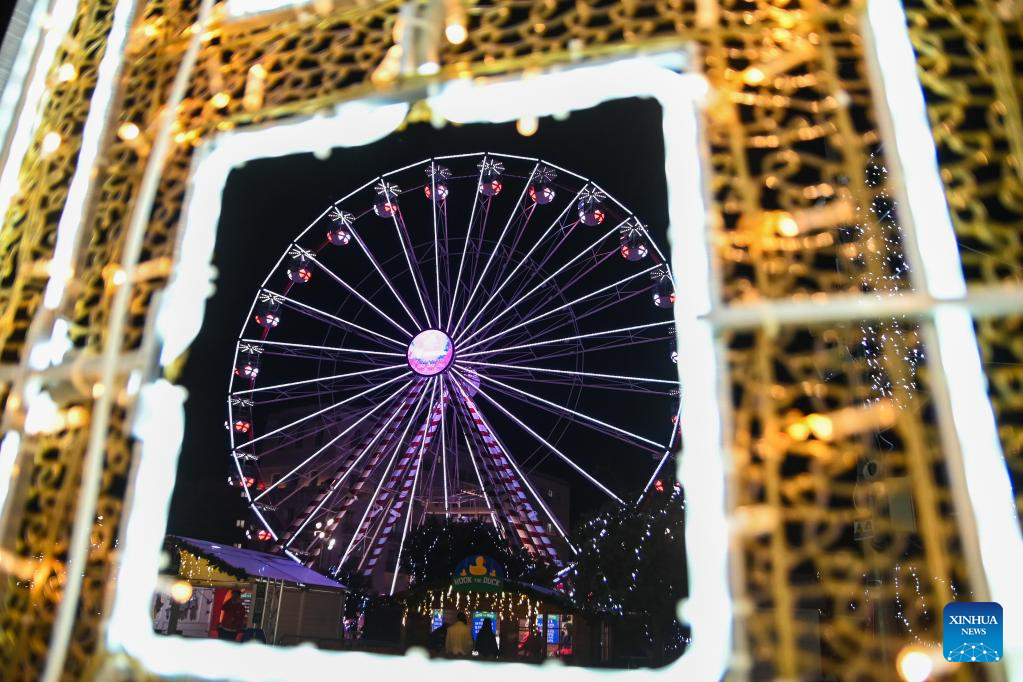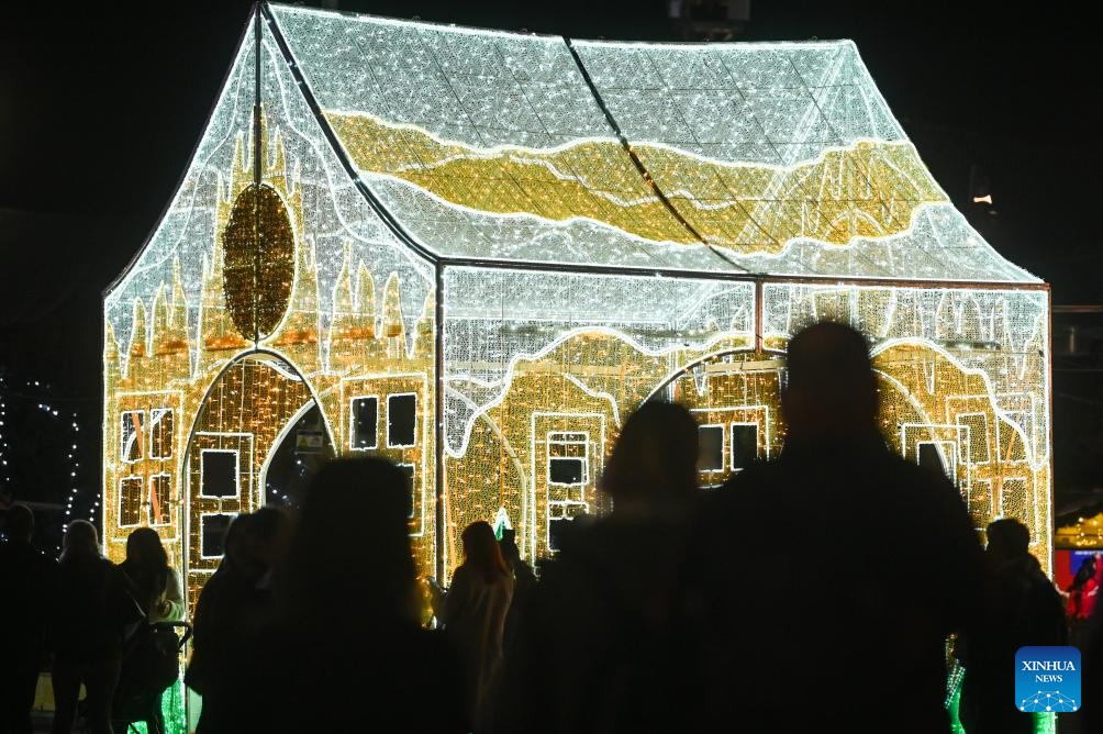 LA VALETA, 10 diciembre, 2024 (Xinhua) -- Personas observan una decoración luminosa en el país de las Hadas de Navidad, en La Valeta, Malta, el 10 de diciembre de 2024. (Xinhua/Jonathan Borg)