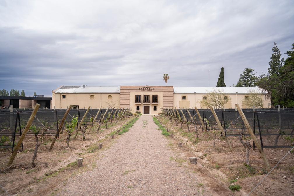LUJAN DE CUYO, 10 diciembre, 2024 (Xinhua) -- Imagen del 7 de octubre de 2024 de la fachada de la bodega argentina Casarena Bodegas y Viñedos, en la ciudad de Luján de Cuyo, en la provincia de Mendoza, Argentina. Las Pequeñas y Medianas Empresas de Argentina ven posibilidades para aumentar los despachos de productos manufacturados de mayor valor agregado, como los vinos de alta calidad, al mercado chino, gracias a la apertura de alto nivel que se está llevando a cabo en el país asiático, indicó el empresario vitivinícola argentino, Nicolás Perinetti, gerente de exportaciones para Asia de Casarena Bodegas y Viñedos. (Xinhua/Martín Zabala)