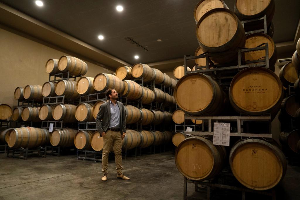 LUJAN DE CUYO, 10 diciembre, 2024 (Xinhua) -- Imagen del 7 de octubre de 2024 del empresario vitivinícola argentino, Nicolás Perinetti, gerente de exportaciones para Asia de Casarena Bodegas y Viñedos, recorriendo la sala de barricas de la bodega, en la ciudad de Luján de Cuyo, en la provincia de Mendoza, Argentina. Las Pequeñas y Medianas Empresas de Argentina ven posibilidades para aumentar los despachos de productos manufacturados de mayor valor agregado, como los vinos de alta calidad, al mercado chino, gracias a la apertura de alto nivel que se está llevando a cabo en el país asiático, indicó el empresario vitivinícola argentino, Nicolás Perinetti, gerente de exportaciones para Asia de Casarena Bodegas y Viñedos. (Xinhua/Martín Zabala)