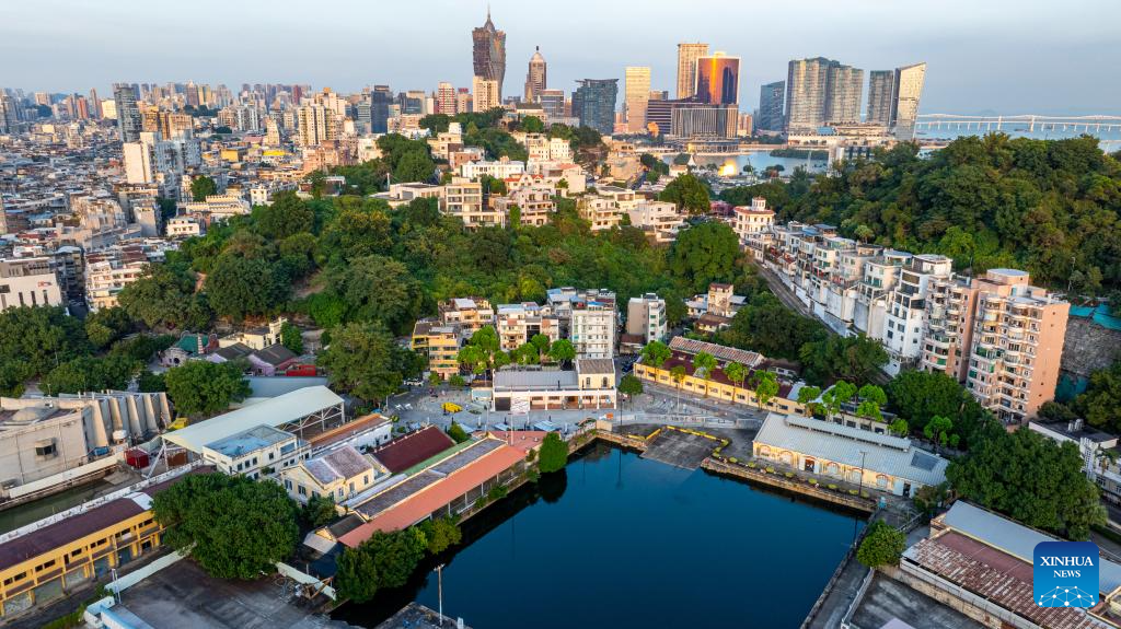 MACAO, 12 diciembre, 2024 (Xinhua) -- Imagen tomada con un dron del 1 de noviembre de 2024 de una vista del revitalizado distrito de Barra, en la Región Administrativa Especial (RAE) de Macao, en el sur de China. El gobierno de la RAE de Macao se ha comprometido a revitalizar y utilizar las áreas históricas en la región. Un creciente número de habitantes y turistas visitan estas áreas hoy en día para sentir el encanto de la integración entre las culturas tradicionales y modernas. (Xinhua/Cheong Kam Ka)