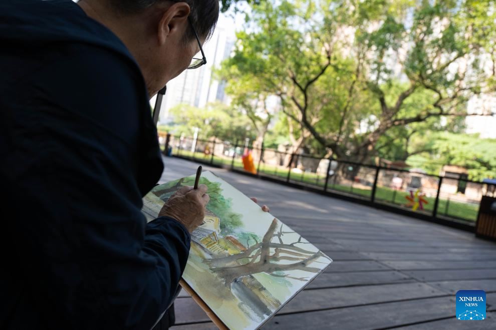 MACAO, 12 diciembre, 2024 (Xinhua) -- Imagen del 7 de diciembre de 2024 de una persona pintando de la vida en la revitalizada Antigua Fábrica de Petardos Iec Long, en la Región Administrativa Especial (RAE) de Macao, en el sur de China. El gobierno de la RAE de Macao se ha comprometido a revitalizar y utilizar las áreas históricas en la región. Un creciente número de habitantes y turistas visitan estas áreas hoy en día para sentir el encanto de la integración entre las culturas tradicionales y modernas. (Xinhua/Cheong Kam Ka)