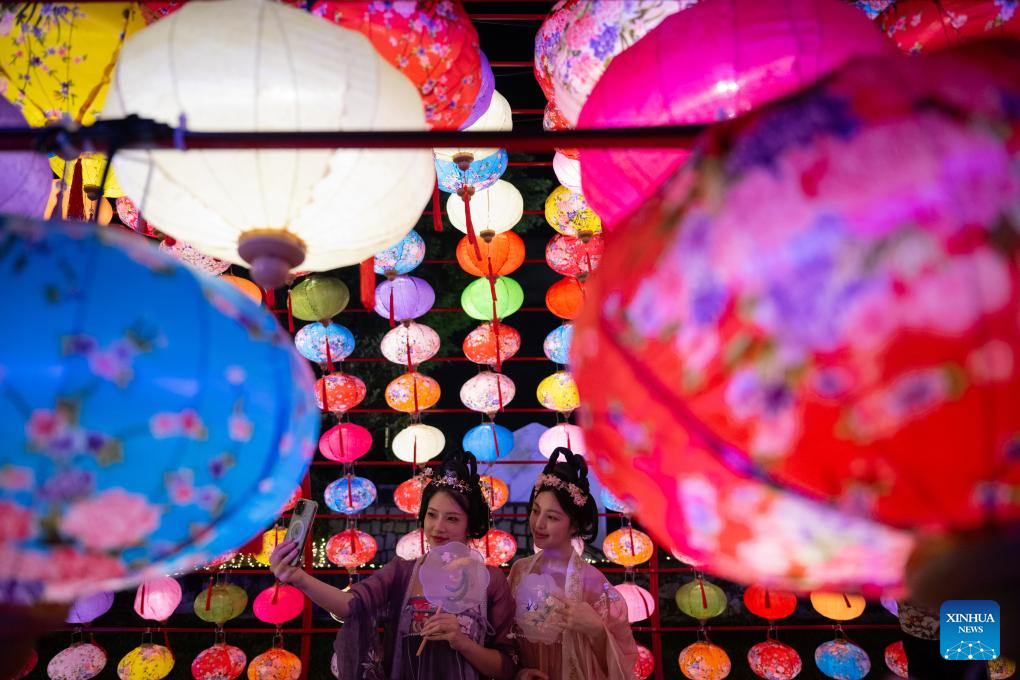 MACAO, 12 diciembre, 2024 (Xinhua) -- Imagen del 17 de septiembre de 2024 de personas en trajes tradicionales chinos tomándose fotografías en la revitalizada Fortaleza del Monte, en la Región Administrativa Especial (RAE) de Macao, en el sur de China. El gobierno de la RAE de Macao se ha comprometido a revitalizar y utilizar las áreas históricas en la región. Un creciente número de habitantes y turistas visitan estas áreas hoy en día para sentir el encanto de la integración entre las culturas tradicionales y modernas. (Xinhua/Cheong Kam Ka)