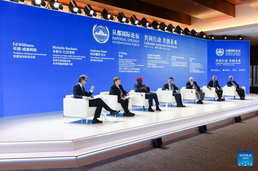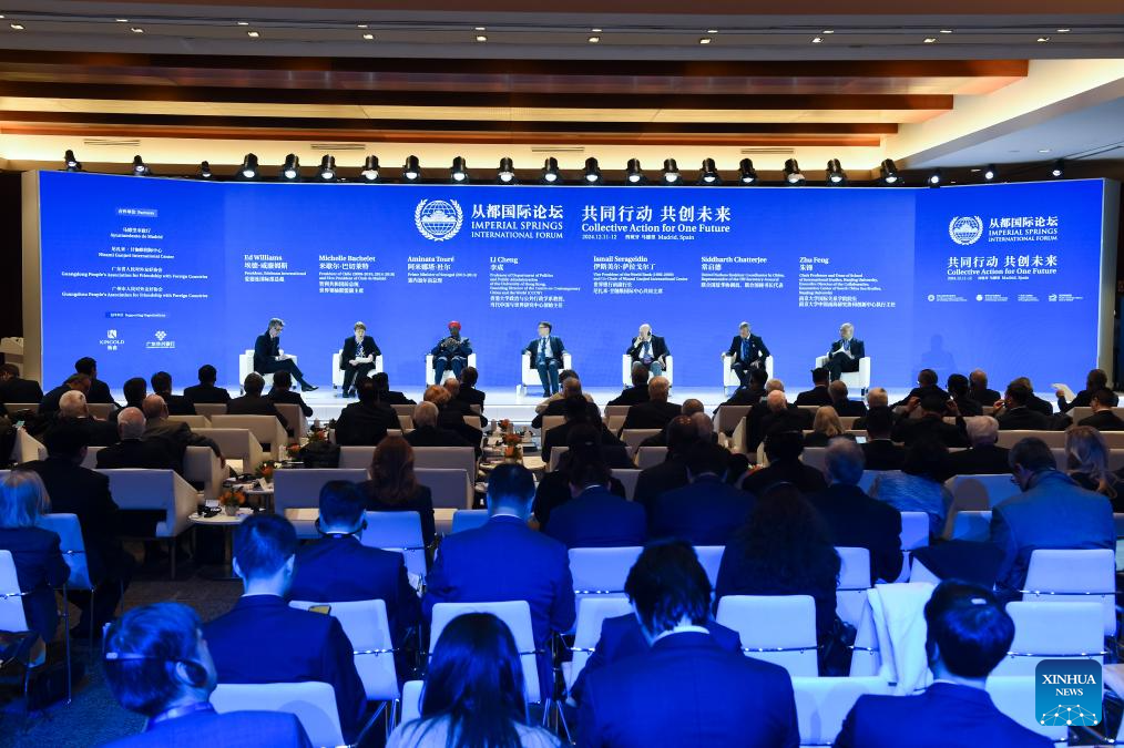 MADRID, 13 diciembre, 2024 (Xinhua) -- Imagen del 12 diciembre de 2024 de invitados comunicándose en el Foro Internacional Imperial Springs (ISIF, por sus siglas en inglés) 2024, en Madrid, España. El ISIF 2024 culminó aquí el jueves, con asistentes de diversos campos que destacaron la importancia de la acción colectiva para abordar los desafíos globales. (Xinhua/Gustavo Valiente)