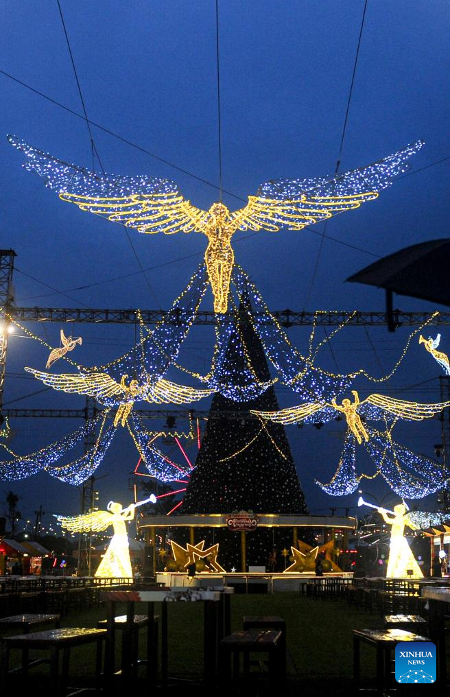 SURABAYA, 14 diciembre, 2024 (Xinhua) -- Instalaciones de luz en celebración de la próxima Navidad son vistas en Pakuwon City Mall, en Surabaya, en la provincia de Java Oriental, Indonesia, el 14 de diciembre de 2024. (Xinhua/Sahlan Kurniawan)