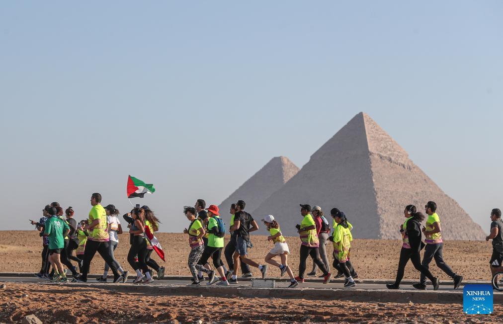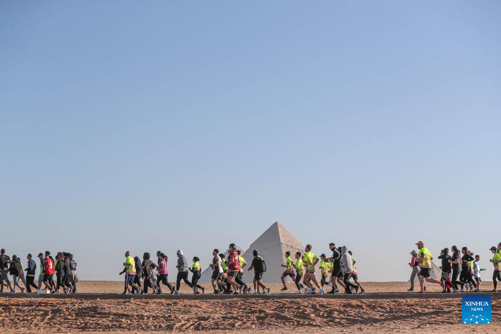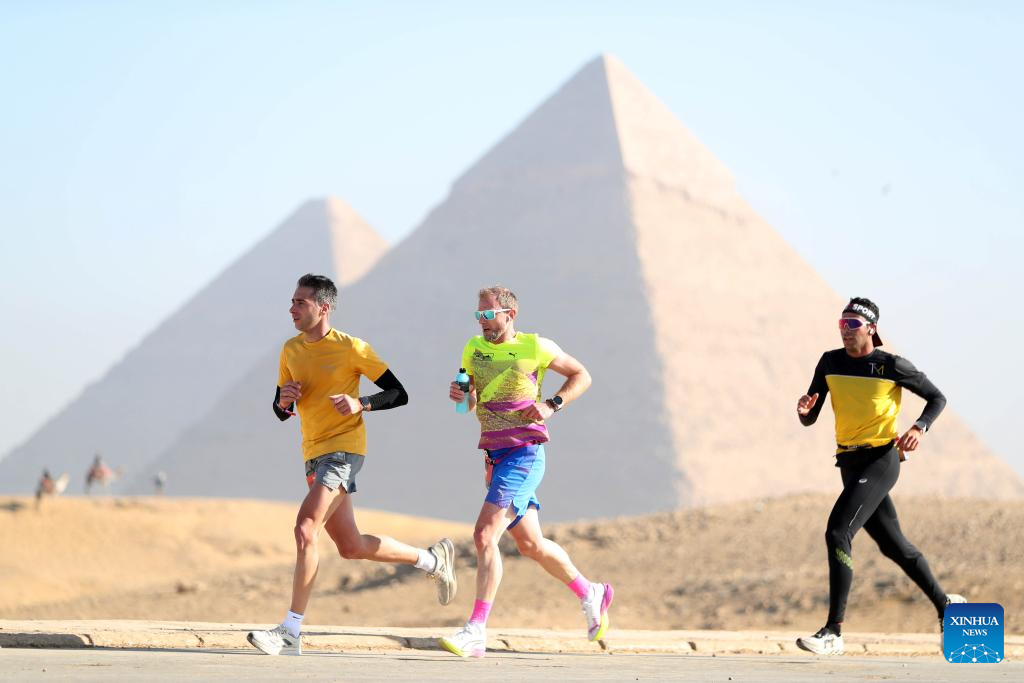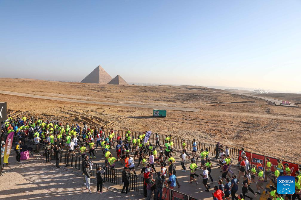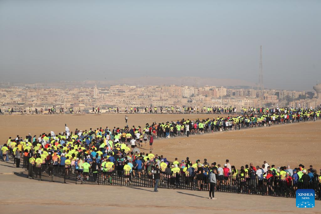 GIZA, 14 diciembre, 2024 (Xinhua) -- Concursantes corren durante el Medio Maratón de las Pirámides en el punto escénico de las Pirámides de Giza, en Giza, Egipto, el 14 de diciembre de 2024. (Xinhua/Ahmed Gomaa)