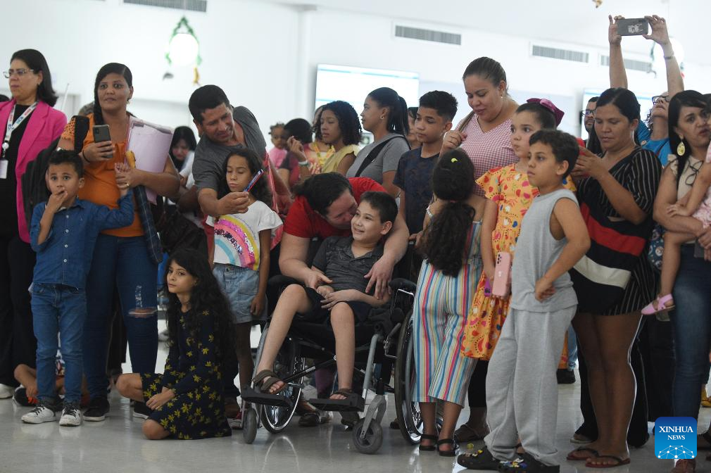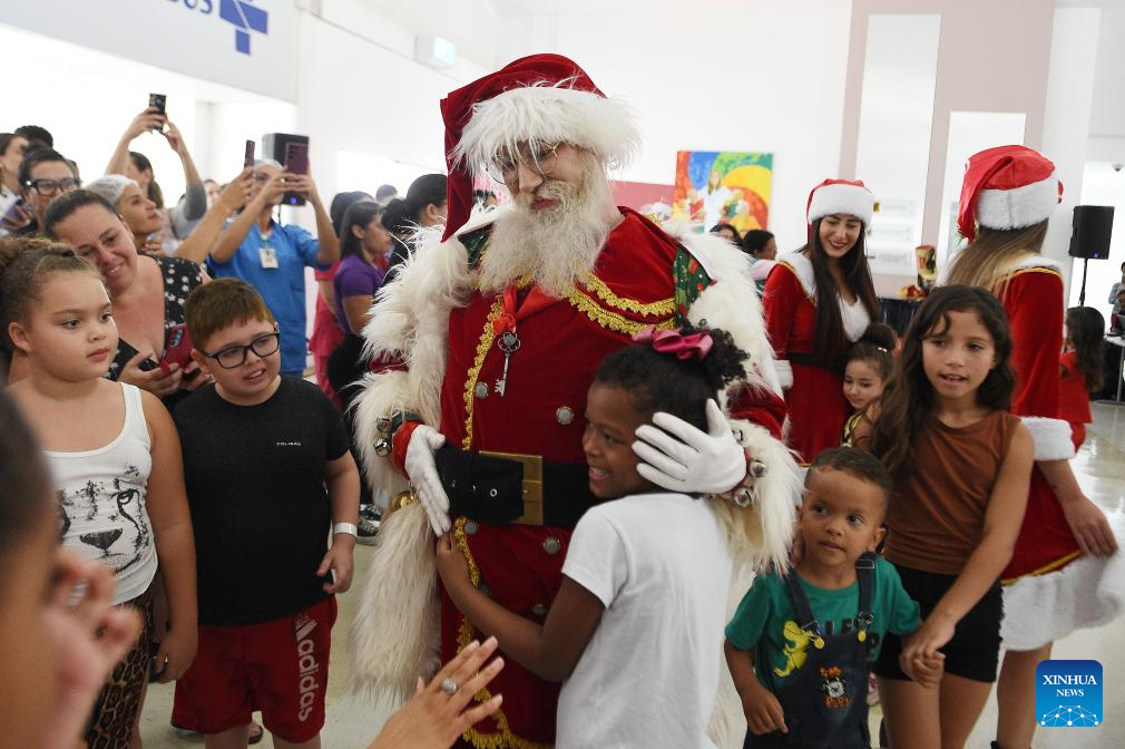 BRASILIA, 16 diciembre, 2024 (Xinhua) -- Niños observan una presentación de un grupo teatral durante las celebraciones navideñas en el Hospital Infantil de Brasilia, en Brasilia, Brasil, el 16 de diciembre de 2024. (Xinhua/Lucio Tavora)